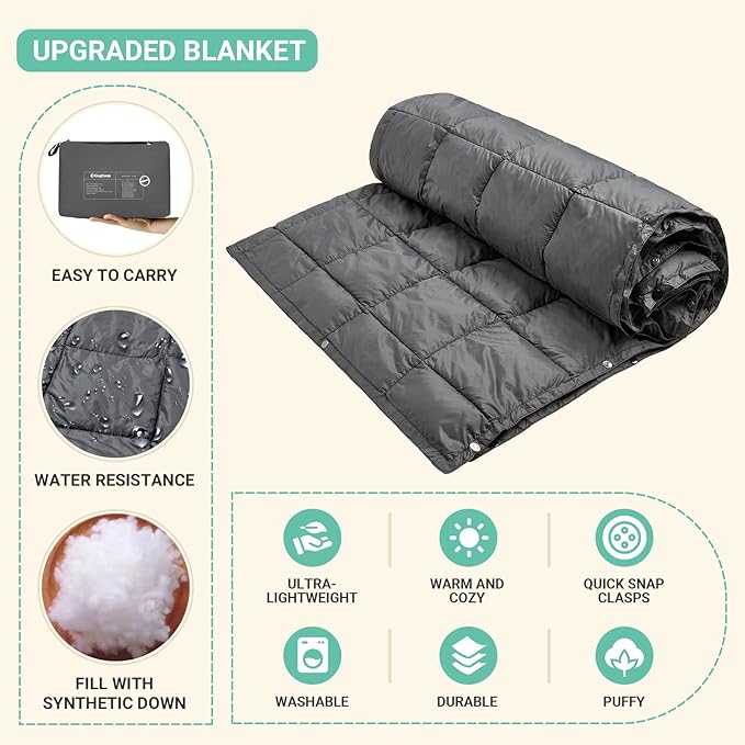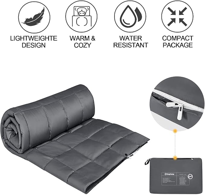 KingCamp Down Camping Blanket - Packable Lightweight Travel Blanket for Stadium, Camping, Backpacking, Compact & Water Resistant & Warm Airplane Quilt