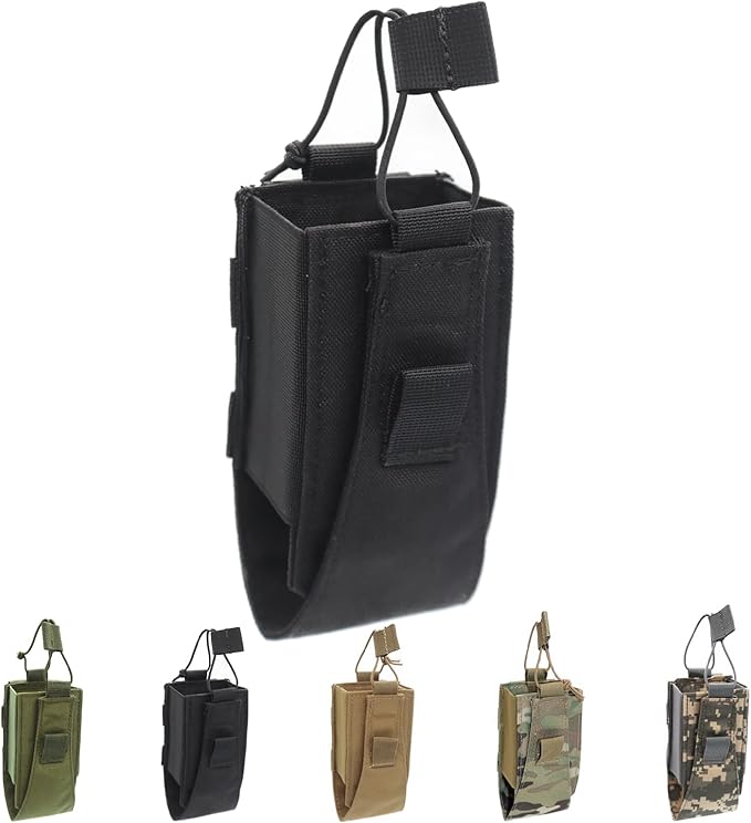 - 🔫Adjustable design: The radio can be securely fastened to the radio holder with an adjustable elastic cord and hook & loop, the detachable while hook & loop inside the bag can be adjusted to tighten the radio at different height, protect the radio from rubbing and prevent the radio from falling.
