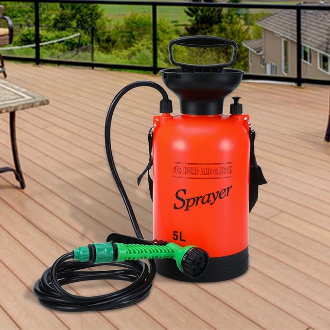 - 【Auto and Manual Pressure Relief】When using the shower, if the air pressure is too high, the pressure relief valve will automatically discharge the excess air to achieve a decompression effect. You can also gently pull the pressure relief valve to empty the pressure in the barrel, and then unscrew the pump to pour out the excess water.