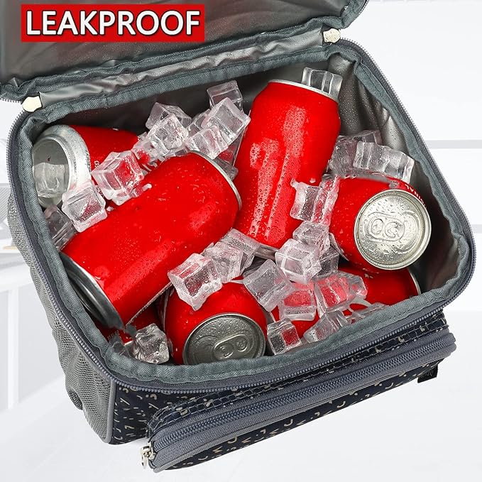 FlowFly Double Layer Cooler Insulated Lunch Bag Adult Lunch Box Large Tote Bag for Men, Women, With Adjustable Strap,Front Pocket and Dual Large Mesh Side Pockets