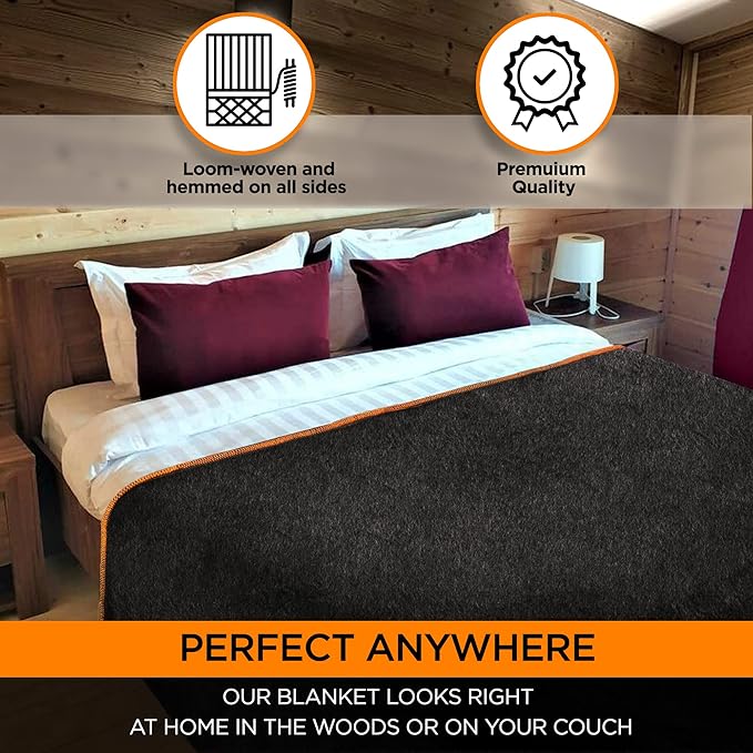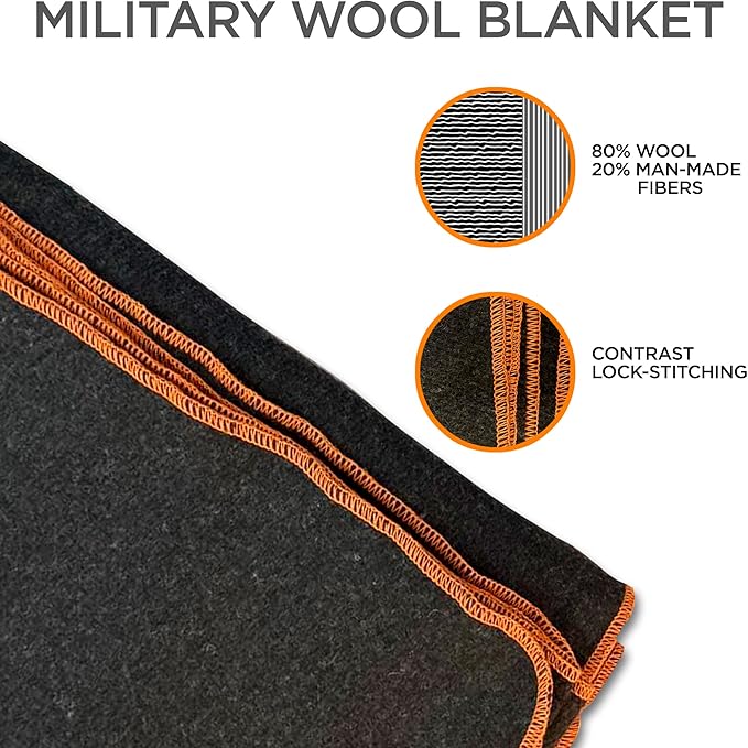 - PREMIUM QUALITY THICK 80% WOOL BLANKET: This heavy-duty military blanket is made of 80% wool and 20% man-made fibers – the optimal blend of comfort, quality and durability. Our moisture-wicking wool blend is also ideal for trapping the heat and keeping you warm and snug even in harsh weather conditions. A foolproof choice for all-year round use, indoors, outdoors and beyond.