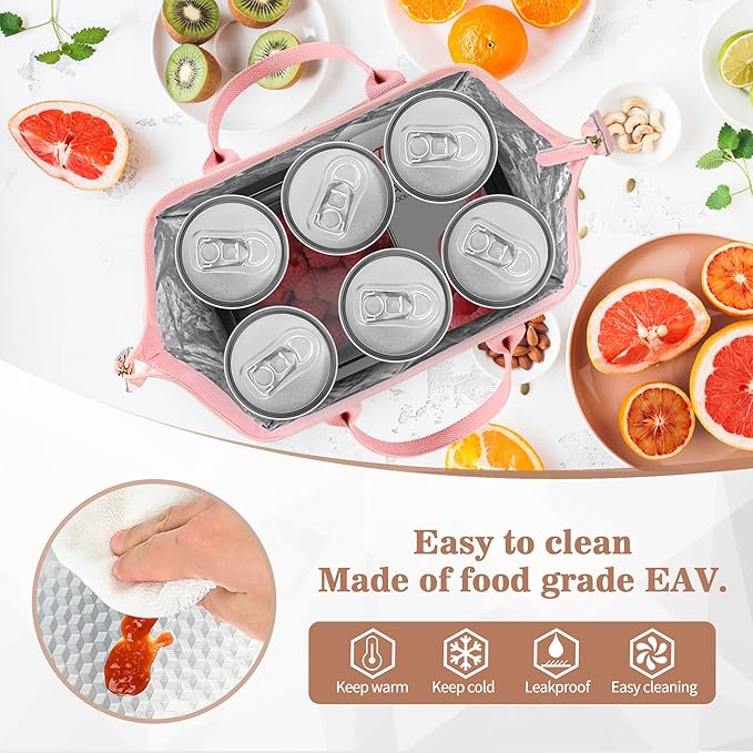 - Long-term Insulation - Lining is made of insulated Aluminum foil. Insulated lining can keep foods and drinks wram & fresh for 6.5 hours and it is easy to wipe clean. Besides,you could put your foods and fruits into the bag directly. Built-in foam provides great protection to your containers.