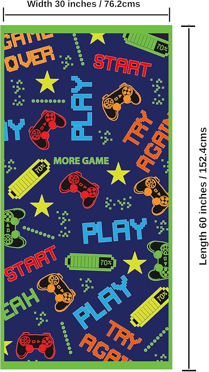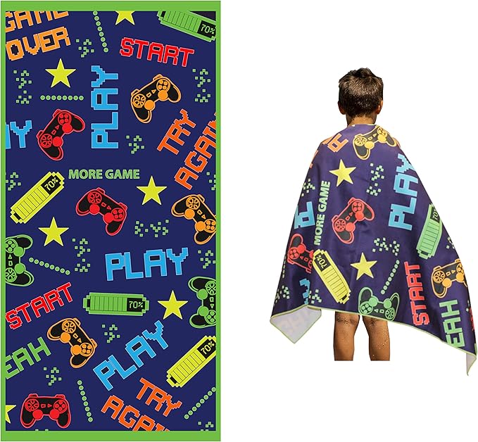 Microfiber Beach Towel for Kids - Thin and Large (30"x60") - Gaming - Absorbent, quick dry, sand free, lightweight, blanket - toddler, girls, boys - For Sports, Pool, Picnic, Camping, Travel, Swim