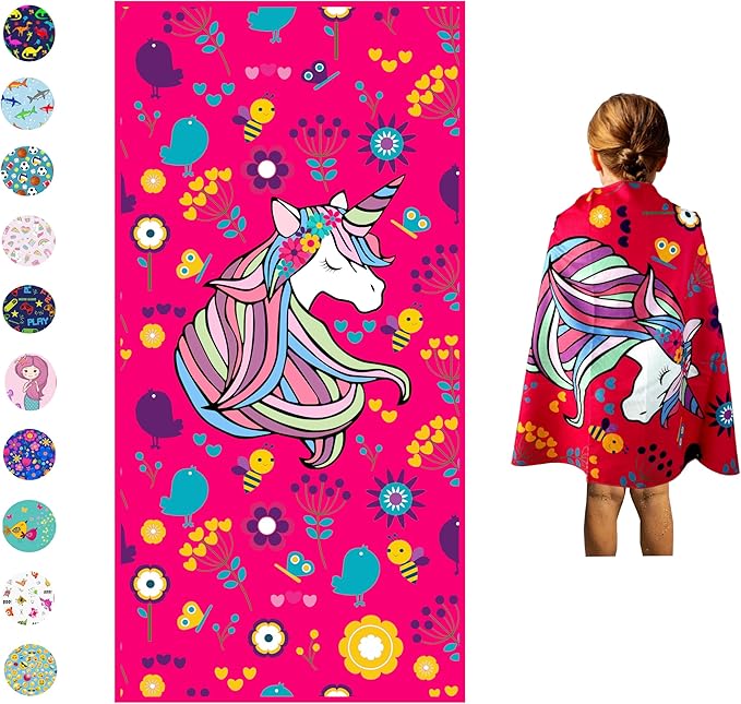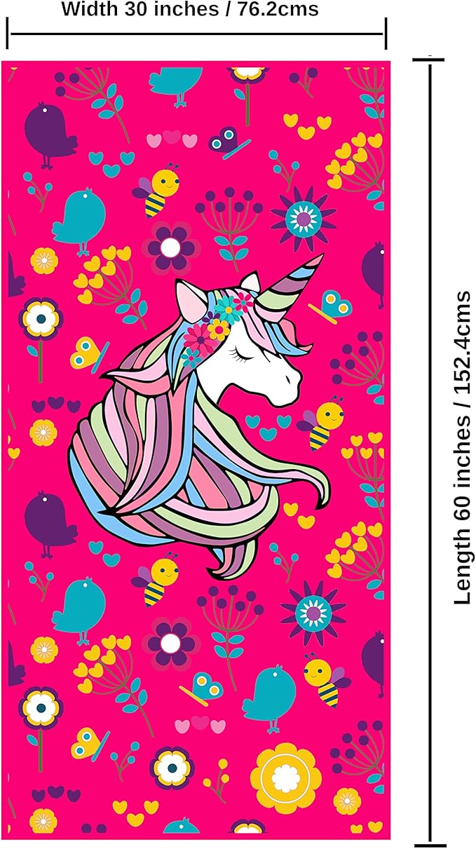 Microfiber Beach Towel for Kids - Thin and Large (30"x60") - Unicorn Hot Pink - Absorbent, quick dry, sand free, lightweight - toddler, girls, boys - For Sports, Pool, Picnic, Camping, Travel, Swim
