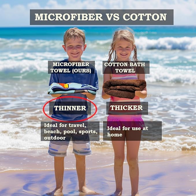 - LUXURIOUS MICROFIBER – Our luxurious and soft towel is made with 100% microfiber. Microfiber towels feel different when compared to traditional cotton towels. They are thinner but strong, lighter but absorbent, soft and smooth to touch, shakes sand off easily and dries quickly. You will love all these added benefits they come with.
