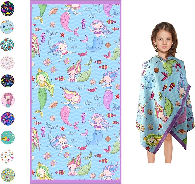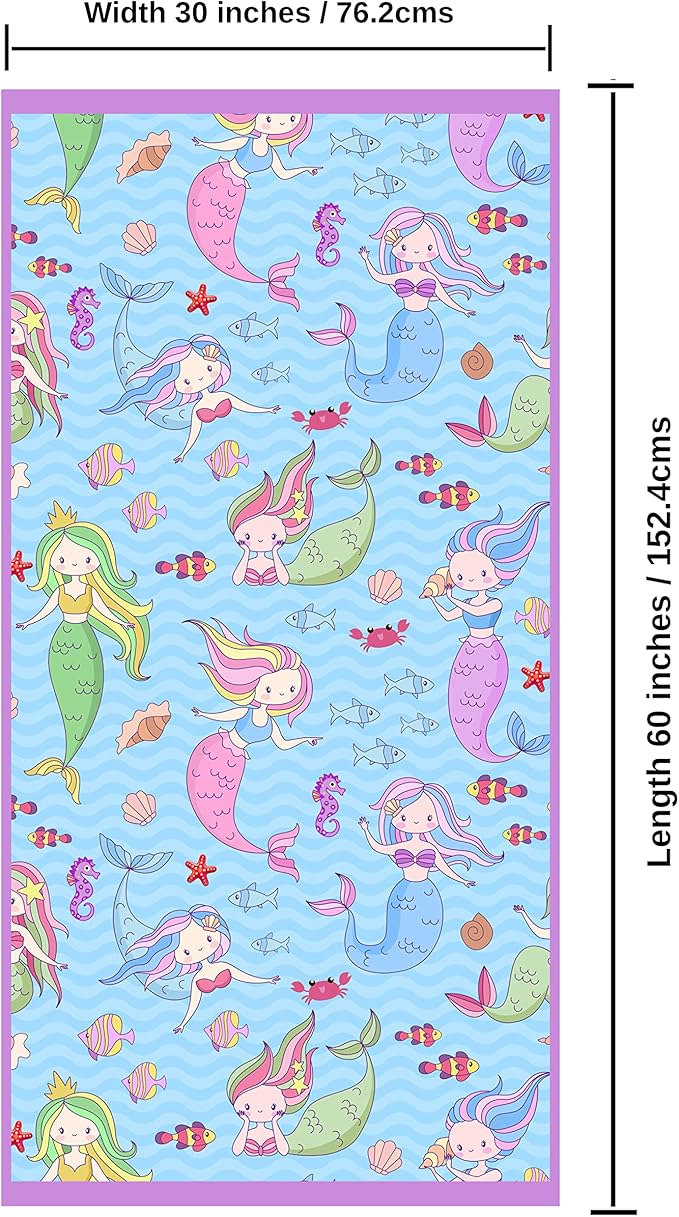Microfiber Beach Towel for Kids - Thin and Large (30"x60") - Mermaids - Absorbent, quick dry, sand free, lightweight, blanket - toddler, girls, boys - For Sports, Pool, Picnic, Camping, Travel, Swim