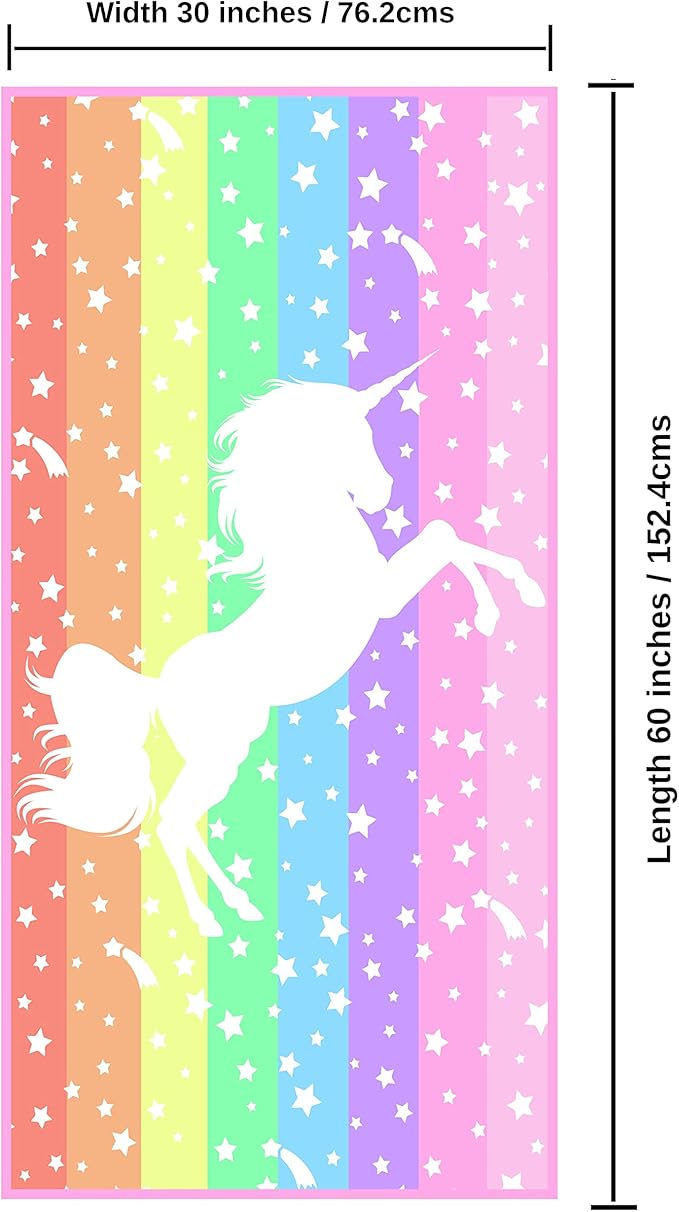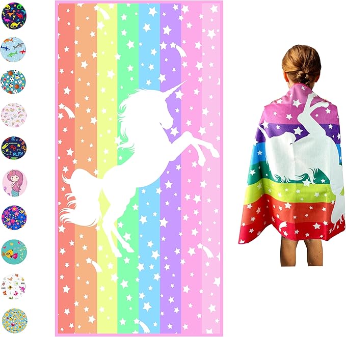 Microfiber Beach Towel for Kids - Thin and Large (30"x60")- Unicorn Pastel -Absorbent, quick dry, sand free, lightweight - toddler, girls, boys - For Sports, Pool, Picnic, Camping, Travel, Swim