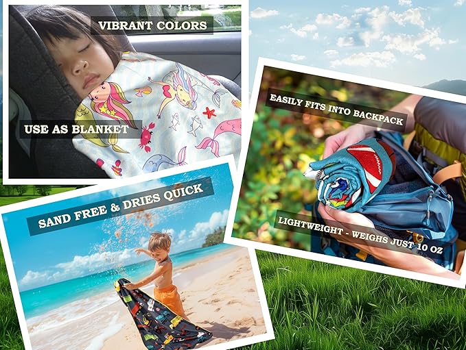 - WIDE USE - This is more than just a gorgeous beach bath towel and soft portable blanket. It is suitable for use at home, beach, pool, swimming, picnic, sleepover, travel, vacation, cruise, exercise, gym, fitness, camping, hiking, yoga, outdoor, water park, tennis, sports, sporting events, etc. It is a multi-purpose towel and a wonderful gift for little ones.