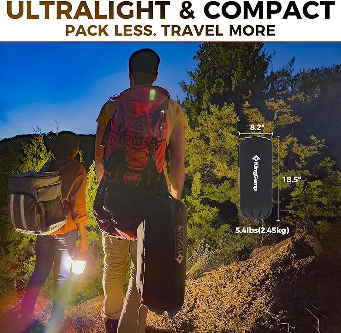 KingCamp Self Inflating Sleeping Pad for Camping Ultra Thick Double Single Foam Mattress High R Value Camping Air Pad Mat, Multi Colors & Sizes