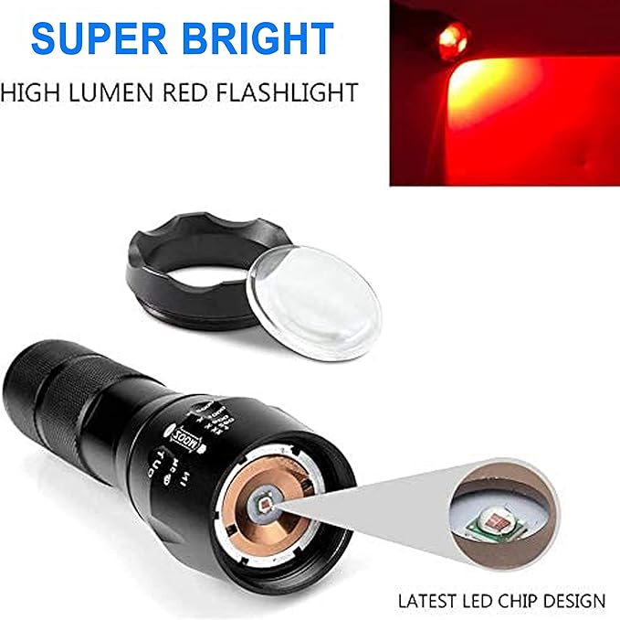 - 💡[High Quality] -- Red LED light flashlight is made of high quality aluminum alloy which is a very lasting, portable, stable light, slip-resistant, daily waterproof