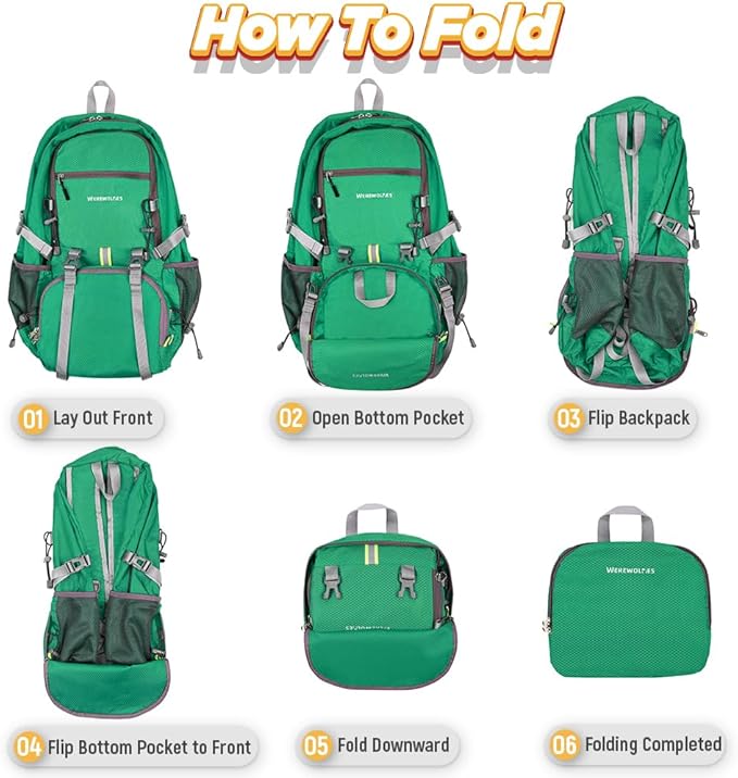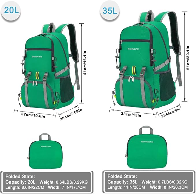 WEREWOLVES 20/35L Lightweight Hiking Backpack, Ultralight Water Resistant Packable Daypack for Women Men