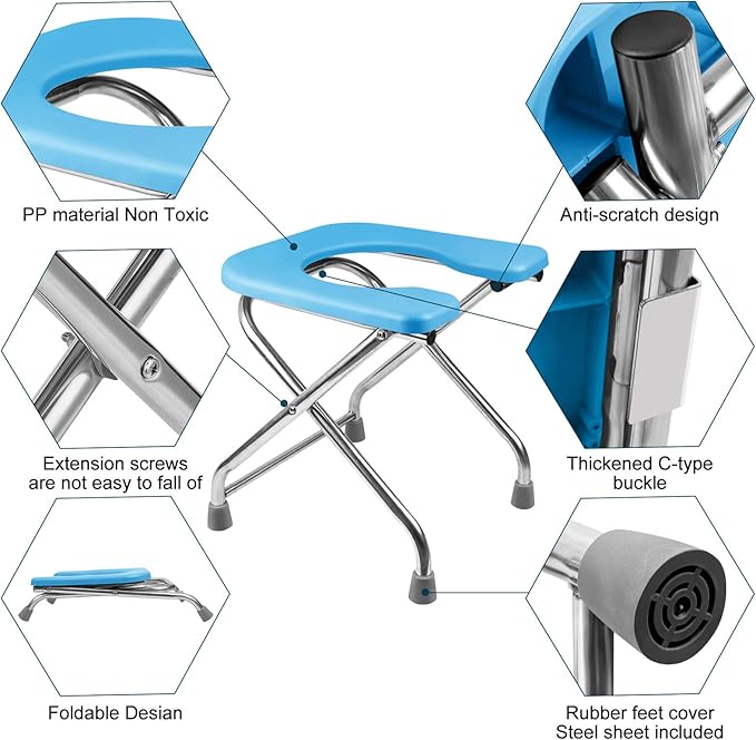 - 【Stainless Steel Frame】The 4-legged and frame are made of high quality Stainless Steel, rust resistance and durability, supports up to 400 pounds. The Toilet Seat made of high quality and precise combination ABS plastic, with washable, anti-slip and wear-resistant performance, strong resistance to fall and pressure.