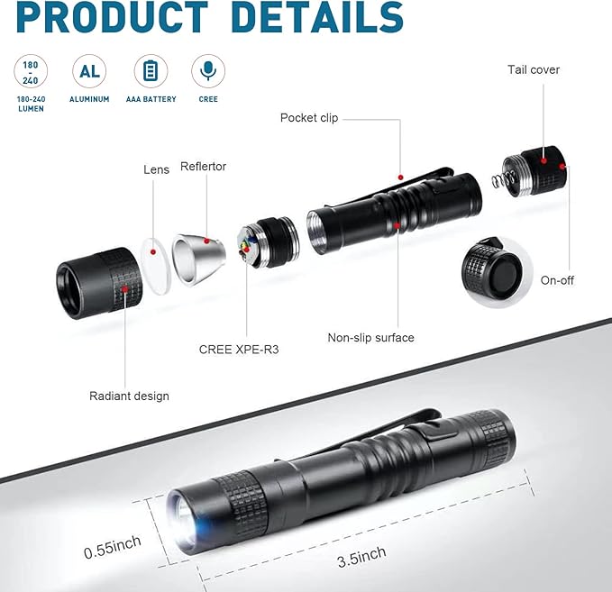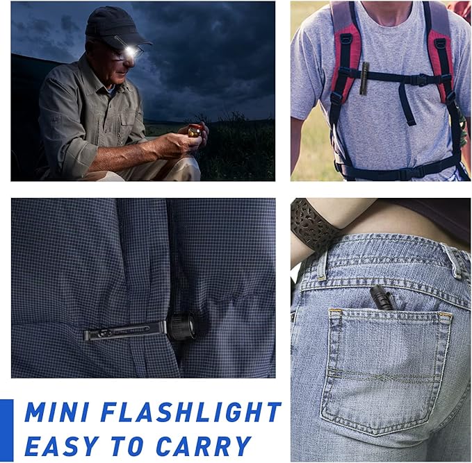- Portable and Convenient: The compact and lightweight design of our mini LED flashlights allows for easy portability. It comes with a removable pocket clip, making it convenient to attach to your pocket, belt, or flipchart. It can also be used as a cap light when clipped, ensuring easy access