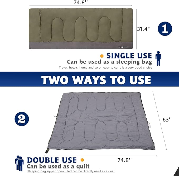 - [Spacious Design] the sleeping bag can accommodate an adult and still has spacious space to bring you a comfortable experience.