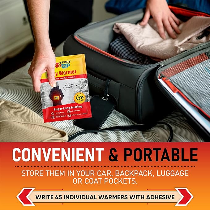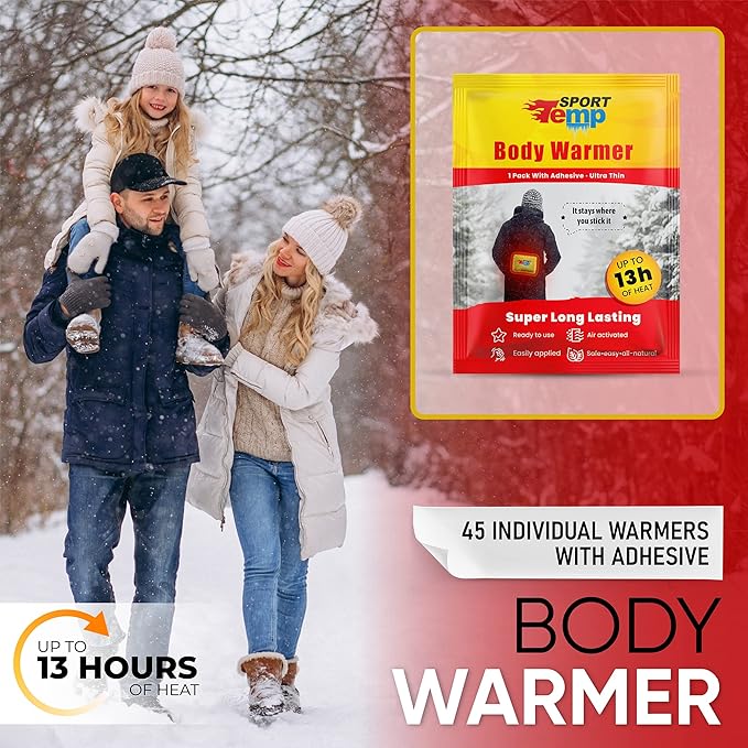 Body Warmers (45 Count) - Up to 13 Hours of Heat, Easily Apply with Adhesive - Ultra Thin, Easy, All Natural - Air Activated, Odorless Hot Body Warmers - Sport Temp