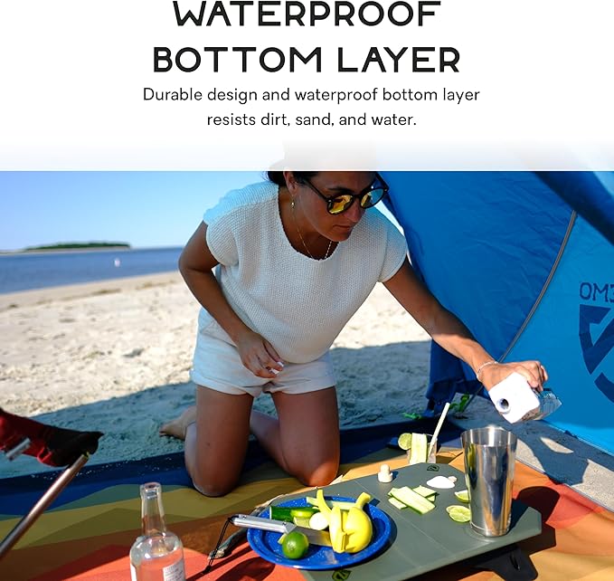 - Durable design and waterproof bottom layer resists dirt, sand, and water.