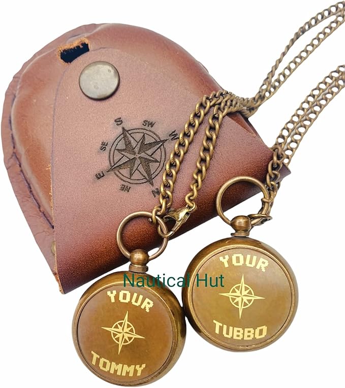 Your Tommy Your Tubbo Brass Locket Nautical Pocket Compass with Leather Carry