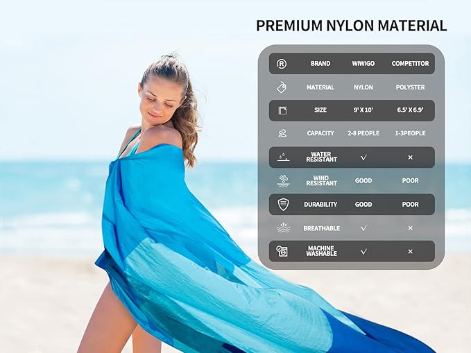 Beach Blanket Waterproof Sandproof Beach Mat 79" X 83" /10'x9'for 2-8 Adults Quick Drying Outdoor Picnic Mat Beach Accessories for Travel, Camping, Hiking