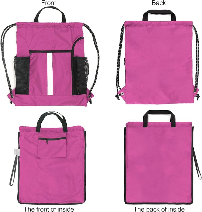 - Handle Design and Reflective Strip:Our draw string back pack bag has 2 handy carry handles allow for hand holding or hang it on the wall or door, very convenient for your use. Also the extra verticle reflective strips can enhance the high visibility to ensure your safe while in dark or dusk. Greatly reduce your chance of being hit at night.