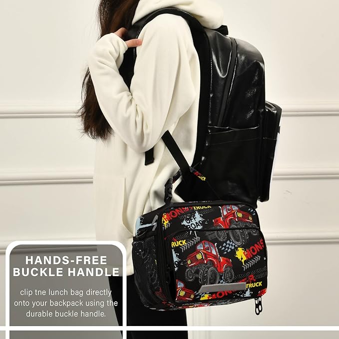 Monster Truck Car Lunch Bag Insulated Lunch Box, Reusable Cooler Lunch Tote Bags Food Container for Boys Girls Kids