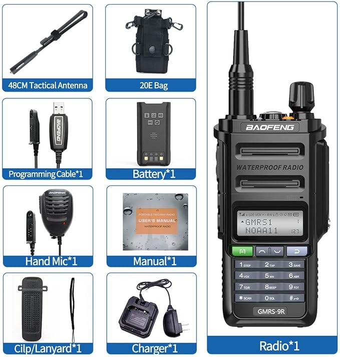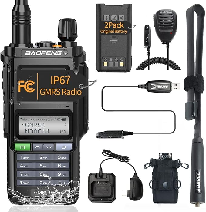 Baofeng GMRS-9R GMRS Radio Waterproof IP67 Two Way Radios Rechargeable Walkie Talkies Long Range NOAA Weather Alerts Scan With extra Battery,Programming Cable,Tactical Antenna,Speaker Mic,Tactical Bag