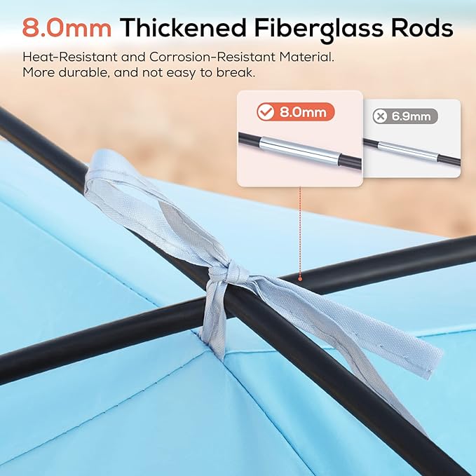 - Upgraded & Durable Design: 8.0mm IMPORTED fiberglass frame is safer, more durable and rust free, which support tent stably stand by itself and keeps shape after long time use