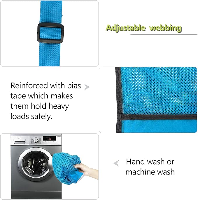 - ADJUSTABLE SHOULDER STRAP & SECURE DRAWSTRING CLOSURE: The large mesh beach bag has an adjustable carrying strap, you can adjust them to the length that suits themselves. Sling design can free up your hands, and a sturdy wide strap avoid digging into your shoulders and help reduce your shoulder burden. Besides, the swim pool bag is a drawstring design to store gear easily and take them out quickly.
