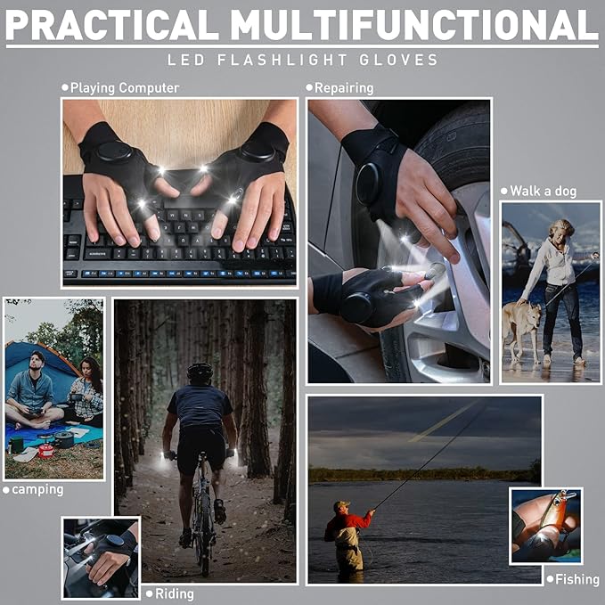 - 🎁Exquisite and Ingenious gifts for Father's Day--ThxToms Rechargeable LED Flashlight Gloves is suitable for everyone who working at night. Unique gifts idea for Birthday, Father's Day, Thanksgiving Day and Christmas!