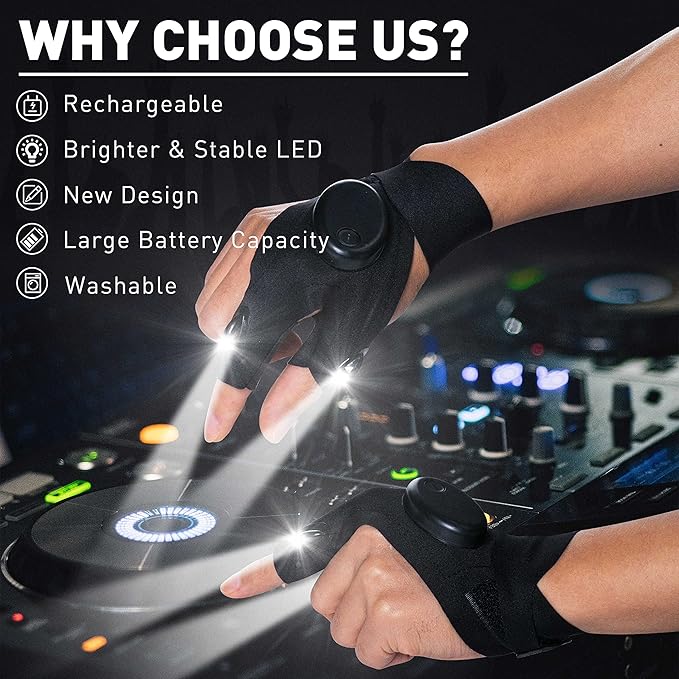- 💡Fully meet your needs--If you need to work at night for a long time and there are no lights! Our rechargeable flashlight gloves must be a good helper to you. Whether you are night fishing, running, camping, hiking, or walking the dog, it will provide you with bright lights!
