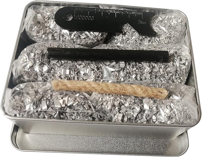 - 6 resealable zip closure bags in 1 of free tin container, each bag is packed full of shiny new shaved, shreds, chips, spiral magnesium without oxidation, the bag is 3 1/6 x 2 1/2 inch.