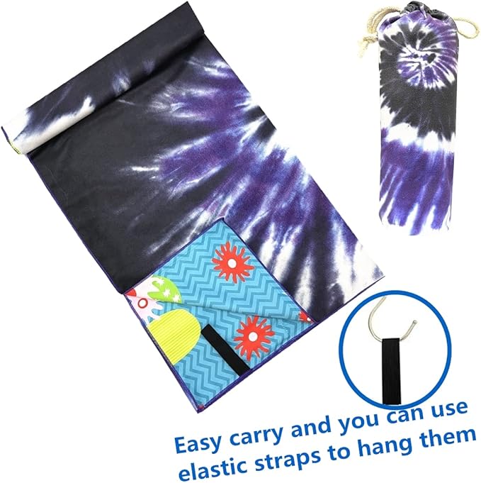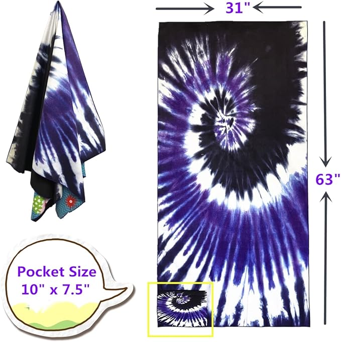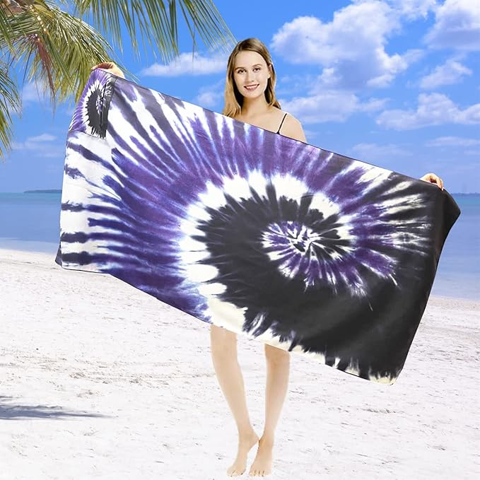 Microfiber Sand Free Beach Towel with Zipper Pocket ,Quick Fast Dry Oversized Lightweight Big Large Towels for Travel Pool Swimming Bath Camping Adult Women Men Tie Dye Beah Towel (tie dye purple)