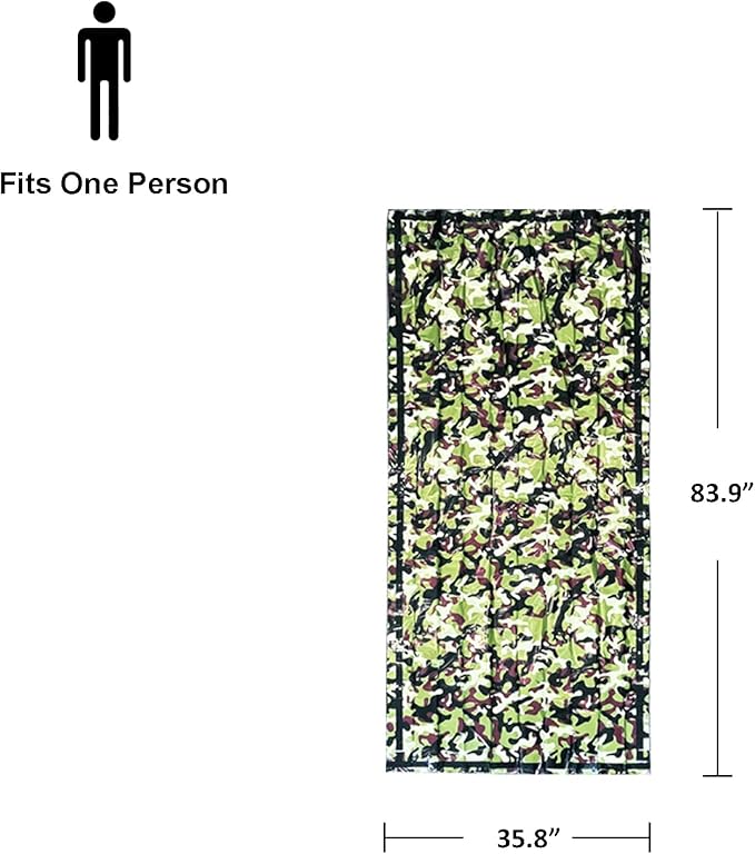 4 Pack Camo Emergency Sleeping Bags Survival Bivvy Sack with Whistles, Lightweight Portable Survival Gear for Outdoor Camping Hiking Keep Warm After Disasters (1PERSON)