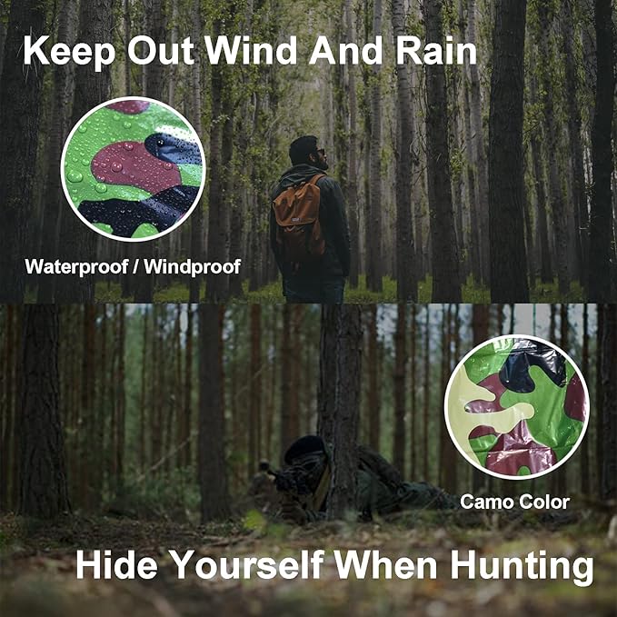 - MULTIPURPOSE EMERGEMCY USES -The emergency bivvy bag serves as your emergency blanket, survival shelter, and emergency bivy sack all-in-one. Use as tent footprint, rain poncho, emergency signal, emergency shelter, ground cover, bivouac sack, wind blocker, water collector, snow melt container and so on.