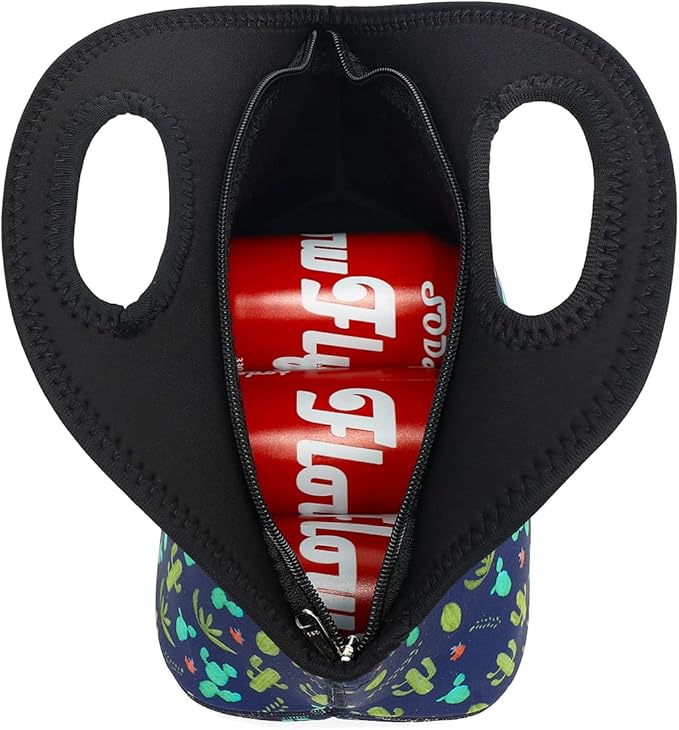 FlowFly Neoprene Lunch Tote Insulated Thermal Reusable Lunch Bag Box for Boys Men with Zipper (Cactus)
