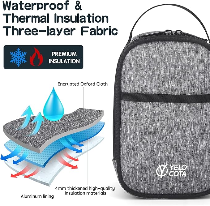 - Long-Term Insulation -- Lining with Eco-friendly EVA material, interior padded with 5mm thicken insulation pearl foam, protect with 300D polyester & composite tarpaulin outer fabric, Yelocota lunch box is designed with triple Insulated to keep food stay cold/warm/fresh for hours.