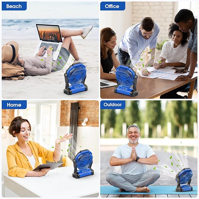 - Strong Wind & Quiet Design for Battery Powered Fans: This portable fan camping comes with 4 adjustable wind speeds to meet different needs and keep you cool at home or for travel like camping. The brushless motor and upgraded fan blades operate efficiently with minimum noise, and you will have a calm and peaceful experience thanks to its noise level of ≤ 30Db