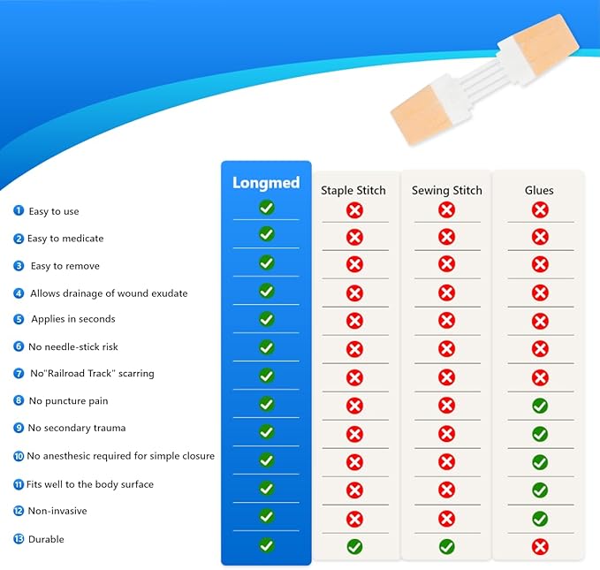 - EFFICIENT AND AFFORDABLE.It is a great alternative that offers immediate and durable wound closure at a fraction of the cost.The laceration closure kit can be used as butterfly bandages. It’s three times faster than getting traditional stitches. You can adjust the tension of stitch sutures as well.