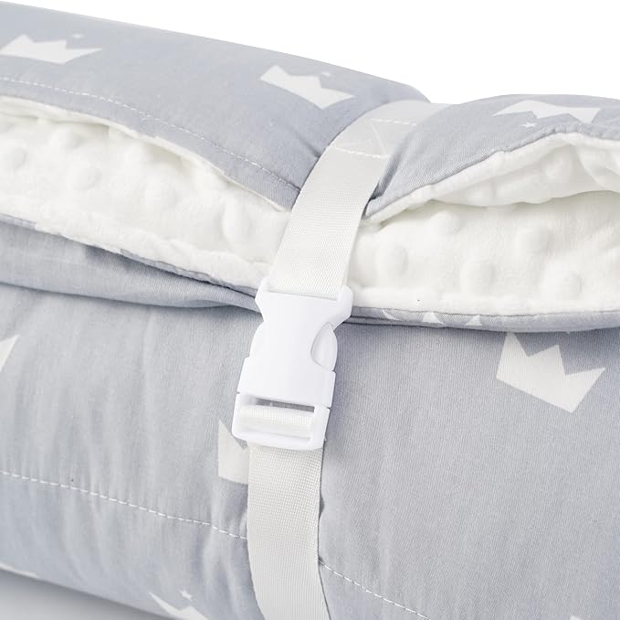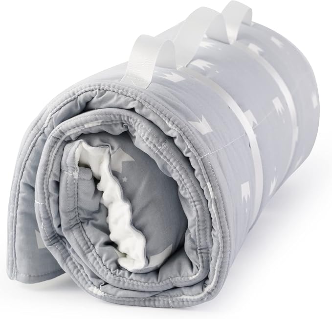 - CONVENIENT FEATURES: Designed to roll-up, velcro close, and carry away with a handle, this nap blanket with pillow is easy to carry to daycare, school, on playdates, or on trips. Our padded nap mat is a toddler and baby essential.