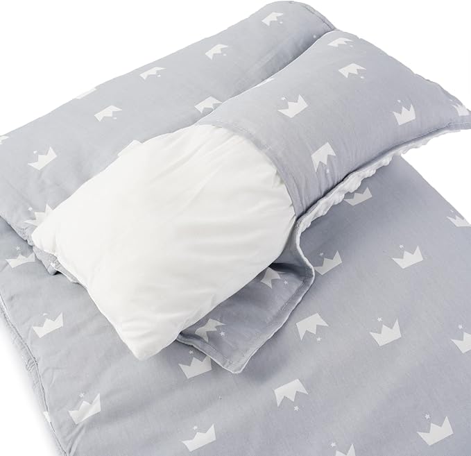 - COMFORTABLE AND WARM: Each lightweight toddler sleeping bag consists of a built-in floor mat, a warm attached blanket, and a pillow - all comprised of a soft cotton and polyester blend that is sure to be gentle on your little one’s sensitive skin.