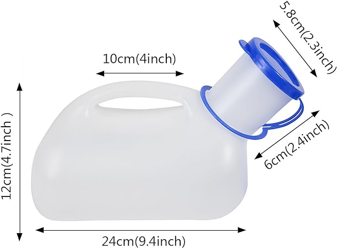 - UNISEX DESIGN: The pee bottle is intended for use by men, women and children of all ages. A large funnel that makes it easier for women and girls to use the pee bottle is included