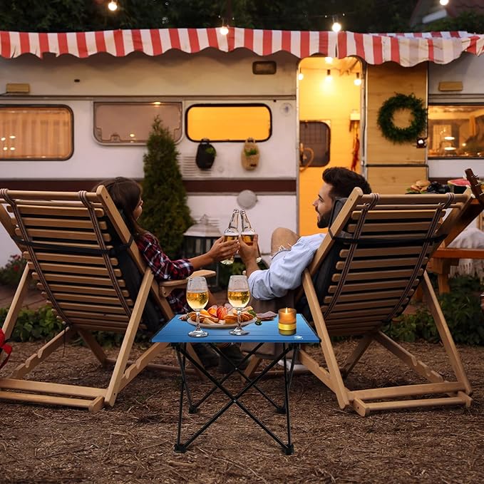 - Ultra-light for Easy Portability: Our folding camp table's top and frame are all made of aluminum, so it's lighter than another comparably-sized wooden camp table, only 3.96 lbs, light enough to carry anywhere. Folds into the included carry bag. This small foldable table can easily fit in the back of a car, RV, or motorcycle