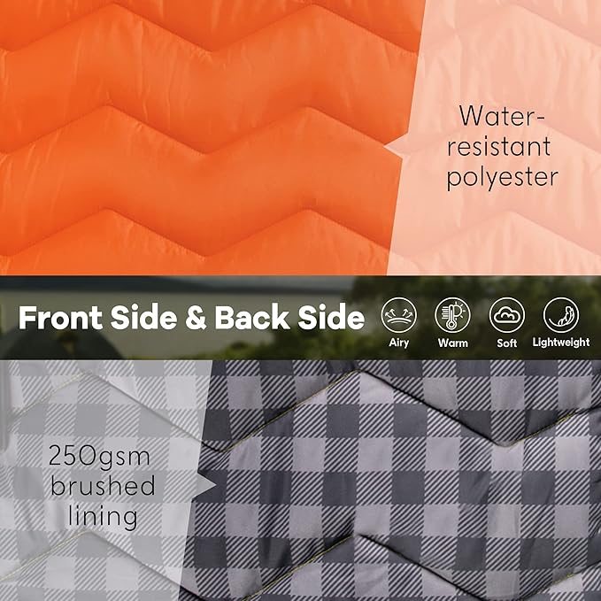 - FABRIC & FILLING - Our camping blanket outside made of waterproof fabric, and 250gsm brushed fabric inside, Soft, warm and cozy enough, these outdoor waterproof camping blankets will provides comfort for a better sleep in rain, snow and cold weather.