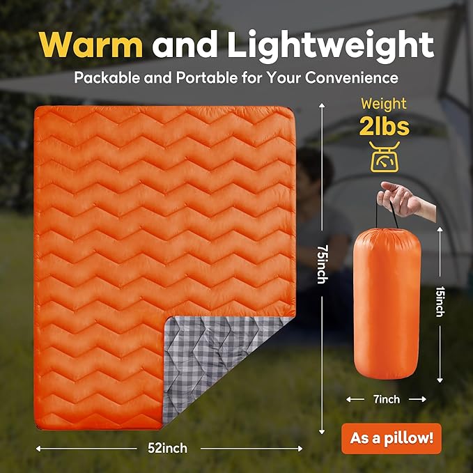 - PACKABLE DESIGN - Outdoor blanket includes a convenient bag for the down alternative warm camping blanket, you can take it almost anywhere, this will be your indispensable partner for all your outdoor, camping, hiking, fishing, campfire, travel and adventures.