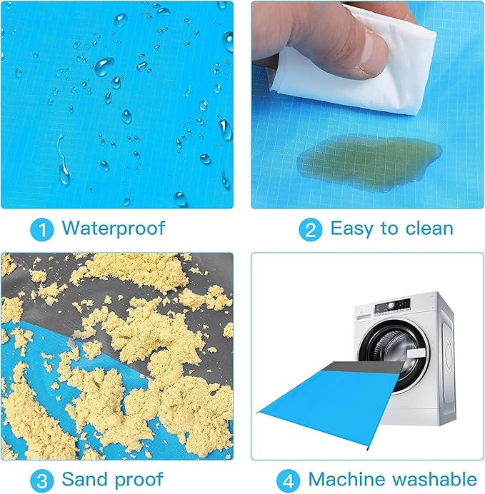 - 🏖️Beach Blanket Waterproof Sandproof:78''×81''size beach blanket,suit for 1-5 adults in total,odorless,made by parachute fabric.Rip-stop 210T polyester,light weight and small after folding.12 oz easy to carry,small and mighty!