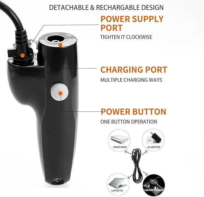 - 【Science & Durability】Hand-held independent power design, separated from the pump. There is no need to put the battery in the water, and the shower can be turned on and off at any time, effectively saving electricity and water. It also protects and improves battery life.