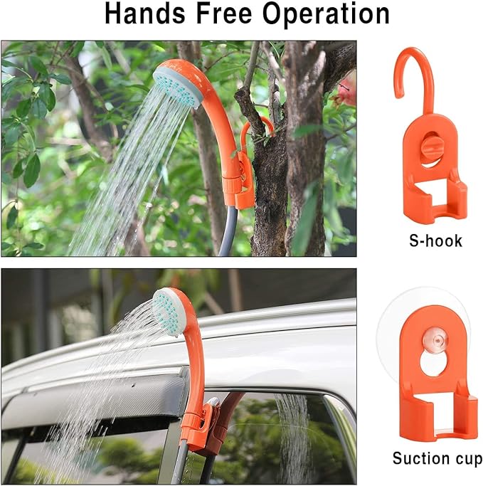 - 【Compact & Portable】portable shower convenient to carry and store In luggage, backpack or car trunk, perfect for outdoors, camping, hiking, kid bathing, pet cleaning, car washing, plants watering, windows and backyard cleaning or wash the sand on the beach.