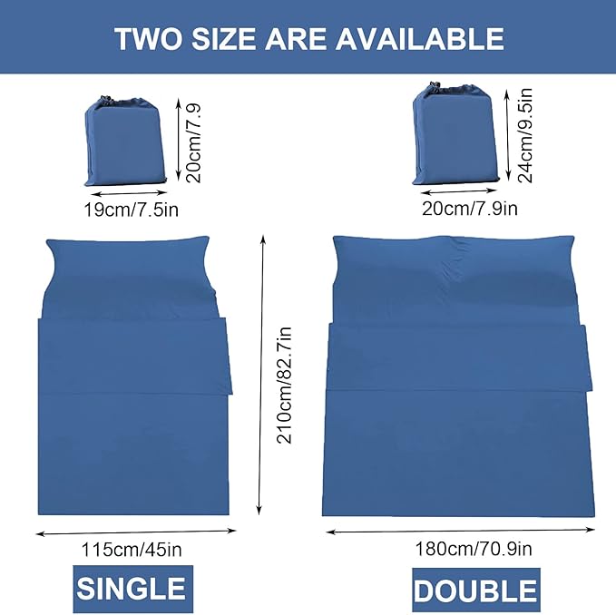- PORTABLE TO CARRY:This lightweight and compact sleeping sack sheets is foldable, and the size after folding is 19x20cm (7.5x7.9"), only 1.65 lb (750g). Comes with a storage bag.You can storage it in your backpack. It will be your great travel and camping companion.
