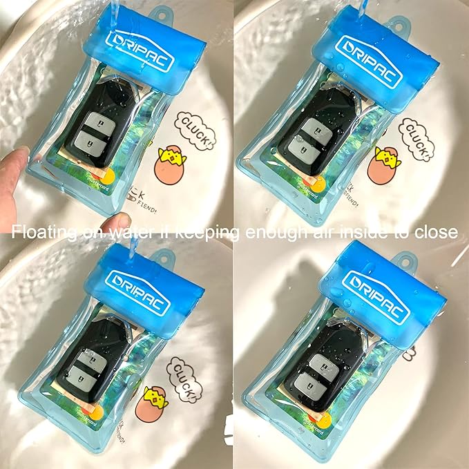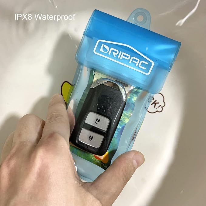 - 1. IPX8 grade 100% Waterproof up to 10M Design. DRIPAC Floating waterproof key Holder can protect all major car electronic key fobs,ID, cash, credit cards,Airtags, medication etc other small items from water, sand, dirt, scratch,