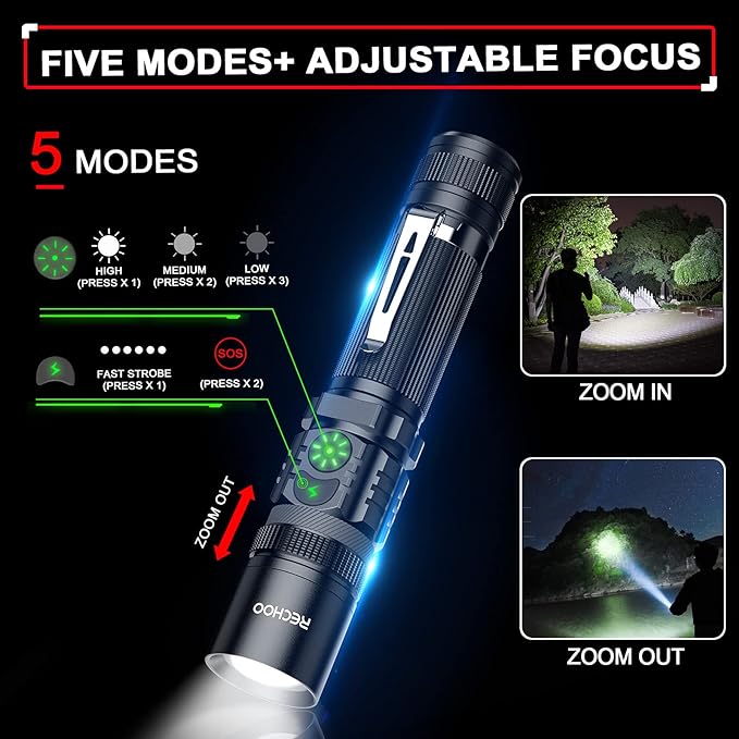 - Excellent After-Sales Service: The excellent after-sales service will be provided for all RECHOO products; If you have any problems with our flashlight, please feel free to contact us. We'll reply to you within 24 hours;