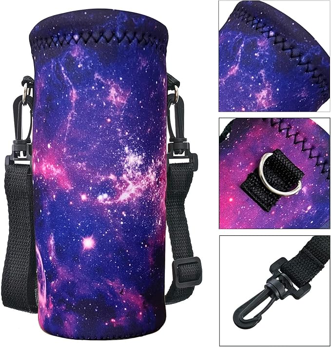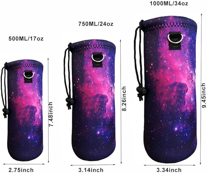 - Three Size for your choice: 500ML(16.9oz) water bottle bag,Length-7.48 inches,Diameter-2.75 inches;750ML(24oz) water bottle holder,Length-8.26 inches,Diameter-3.14 inches;1000ML(34oz) water bottle carrier,Length-9.45 inches,Diameter-3.34 inches.
